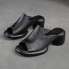 Johnature Peep Toe Slippers Solid Color Vintage Genuine Leather High Heels Comfortable Simple Women Shoes
