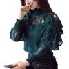 Hollow Out Ruffle Lace Nine Quarter Sleeve Blouse Shirt 2023 Women Clothing Floral Women Blouses Female Tops Elegant
