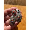 Ethnic Silver Color Oval Carving Pattern Dangle Earrings for Women Vintage Inlaid with Colored Stones Earrings Jewelry