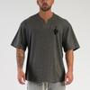 Do The Work Oversized Men V-neck Drop Shoulders Gym Sports Bodybuilding Fitness Loose Cotton Streetwear Letter Printed T-shirt