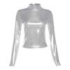Womens Shiny Long Sleeve T-shirt Fashion Metallic Mock Neck Slim Fit Tops Party Clubwear
