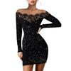 Lady Petticoats Plus Size Women Mini Dress Splicing Design Off Shoulder Clothing Skinny Sheath Dress for Club