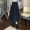 Vintage Solid Color Double Layer Women French Ruffled A-line Pleated Skirts Half Skirt Female White Long Skirts