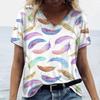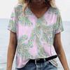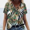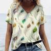 2024 New Women T-shirt Peacock Feather Print Plus Size Top Summer Women's Trend Clothing Fashion Short Sleeve Shirt V-Neck Tees