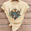 Fashion Women Animal Cow Skeleton Flower Print T Shirt Funny Casual O-neck Short Sleeves T-shirt Summer Female Tee Shirt
