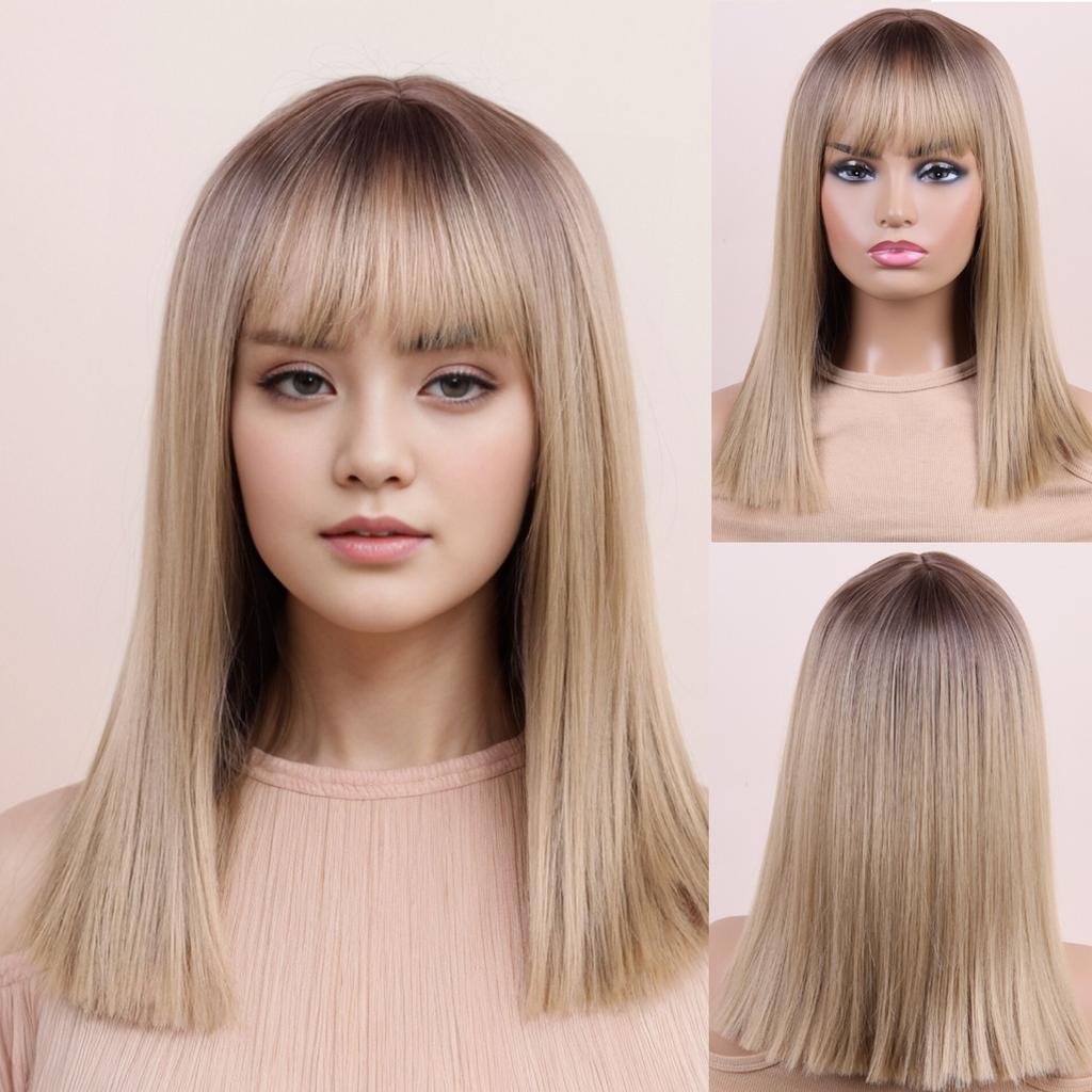 Synthetic Blond Brown White Red Wigs With Bangs Short Straight Wigs for Women Daily Cosplay Natural Hair Wig Heat Resistant Fiber