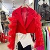 High-end Heavy Industry Three-dimensional Flower Design Suit Collar PU Leather Jacket for Women Autumn New Style