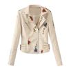 Womens Casual Long Sleeve Embroidered Studded Zipper Slim Leather Jacket