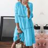 Women Boho Solid Neck Dresses Lace Hollow Out Splice Sleeve Mid-Long Dresses