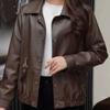 Fashionable Lapel Leather Jacket Women's Short Style Autumn and Winter New Style Velvet and Cotton Warm Loose Leather Jacket