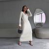 Women Elegant Solid Slim Long Sleeve Ribbed Knitted Dresses Autumn Winter Casual Basic V-neck Warm Sweater Dress