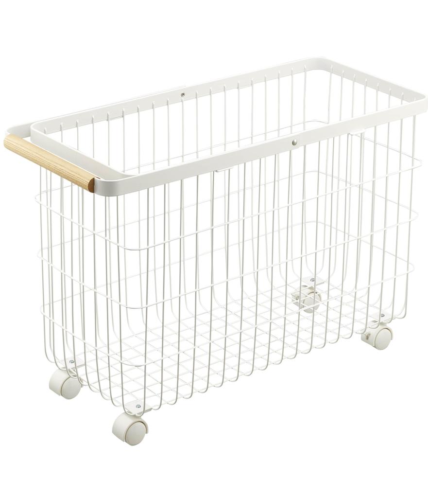 Yamazaki Jitsugyo Laundry Basket with Casters Wide & Low White Approx. W55.5 X D25 X H37.5cm (When Using Handle Approx. H66cm) Tosca Tosca Smooth