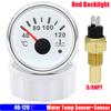 40~120 Celsius 52mm Water Temperature Gauge+Sensor with Flash Alarm Waterproof Red Light Water Temp Meter for Car Boat 12V 24V