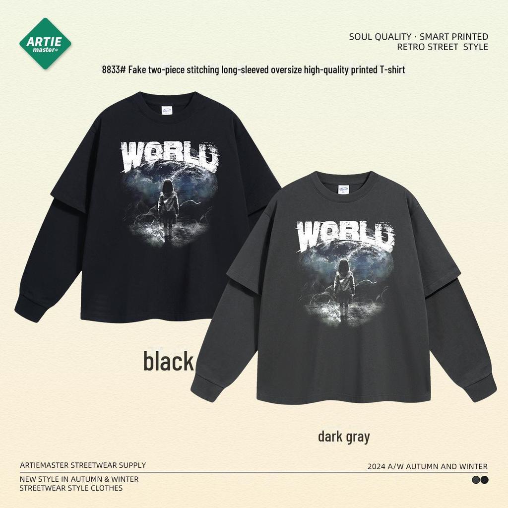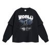 2024 Men's Fashion Long-Sleeve Digital Print Fake Two-Piece Loose Casual Shirt