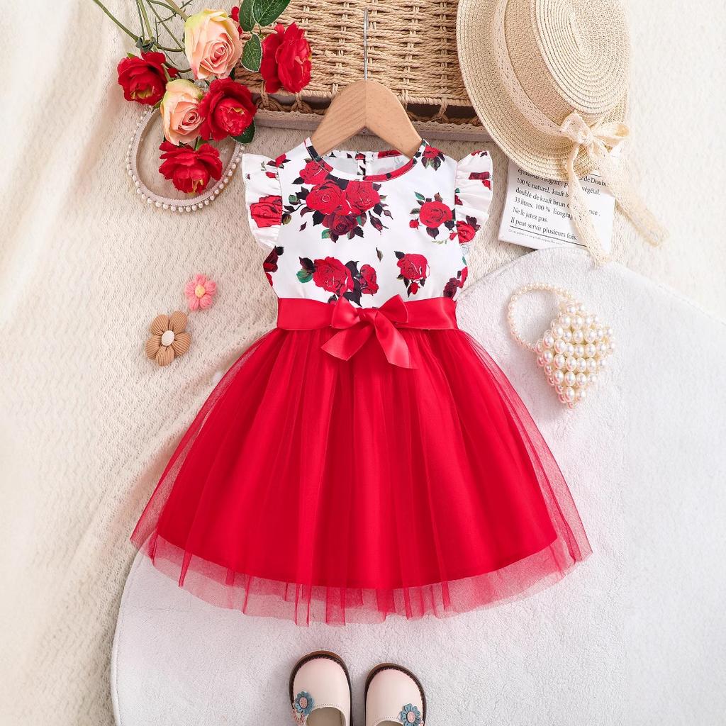 Girls Fashion Dress Summer Children Sweet Floral Dress Princess Dress