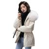 Women Padded Jacket Thickened Plush Lined Coat with Drawstring Waist Winter Warm Puffer