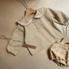 2024 Autumn Korean Navy Plaid Top & Shorts Set for Boys and Girls