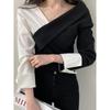 Korean Chic Off-Shoulder Autumn Retro Contrast Top for Women