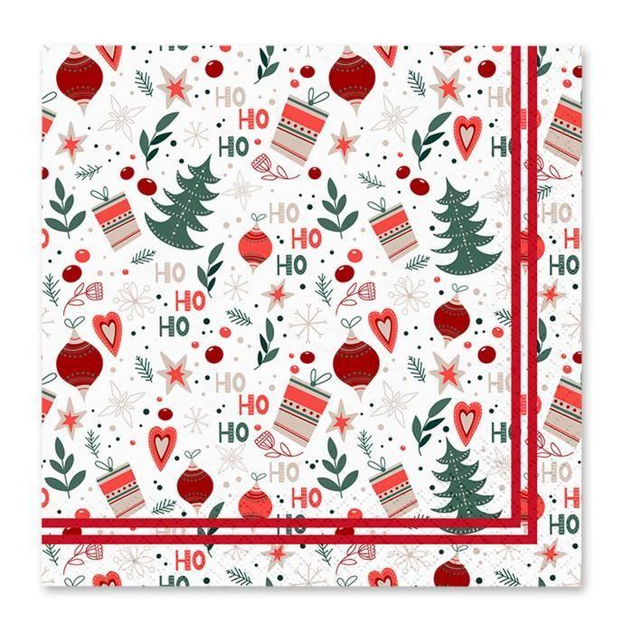 Serviettes En Papier - Joyeuses Fêtes - 33 X 33 Cm - Lot De 20 - Blanc Et Rouge - Pratiques Et Élégantes