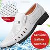Men's Breathable Summer 2025 Genuine Leather Shoes Thin Business Casual White Hollow Out Soft Leather Men's Sandals