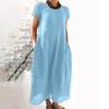 Women's Summer Casual Solid Color Short-sleeve O-neck Stitching Loose Pocket Cotton Linen Dress