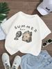 Chinoiserie Style Funny Summer Retro Trend Cartoon Kitten Print T-shirt Women Loose Design Lovers Casual Short Sleeved