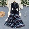 Spring Autumn Women Elegant Blazer Collar Double Breasted Print Office Party Long Maxi Pleated Dresses