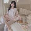 2024 Women's Gold Velvet Pajamas Set: Lace-Trimmed Long-Sleeve Top & Trousers, Autumn/Winter Court Style