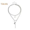 Layered Faux Baroque Pearl Necklace for Women Stacking Beaded Faux Pearl Paperclip Chain Necklace Jewelry for Wife Girlfriend