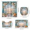 1/4pcs Luxury Ocean Starfish And Seashells Waterproof Shower Curtain Set Decorative Bathroom Set Non-Slip Carpet Toilet Cover Bath Mat And 12 Hooks