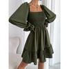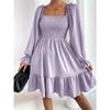 European and American French Simple Square Collar Parallel Crepe Sewing Body Ruffled Hem Dress