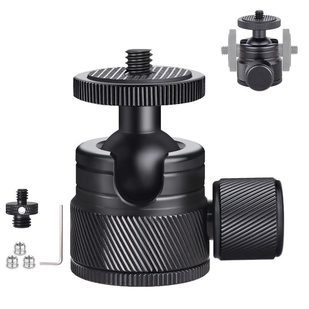 ARTCISE 20mm Ball Low Center of Gravity Head with Male To Male Camera Screw Double Head Stud CNC Machined Aluminum 360 Degree Rotation Panoramic Ball