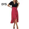 Women's Ruffle Irregular Hem Midi Dress Short Sleeve V-Neck Printed Wrap Dress Summer Beach Wedding Guest Dresses
