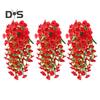 3Pcs Hanging Artificial Morning Glory UV Resistant Realistic Fake Silk Flower Wedding Party Indoor Outdoor Garden Wall Hanging Faux Flower Decoration