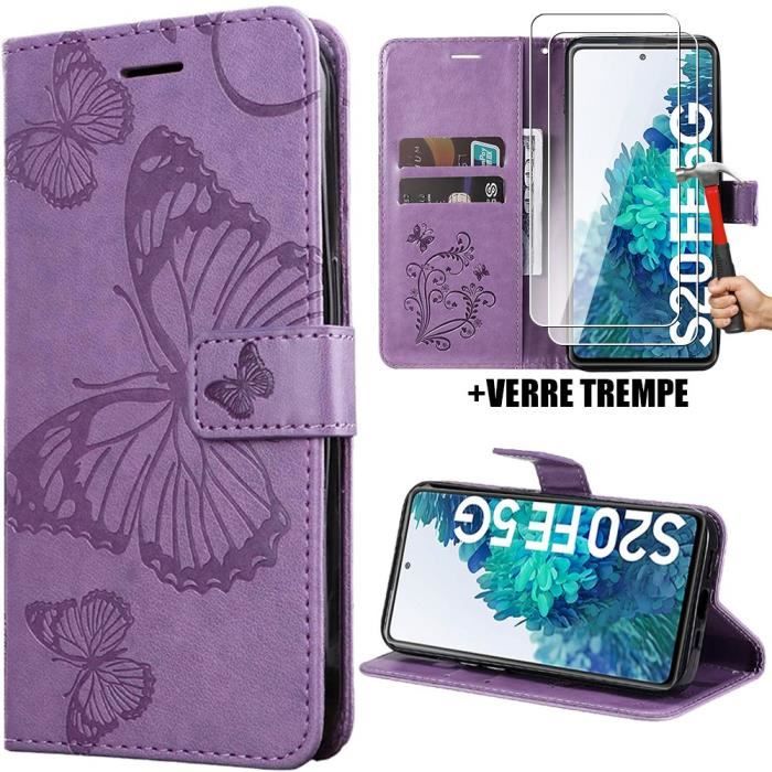 Coque de protection - BOOLING - pour Samsung Galaxy S20 FE - Cuir Synthétique Violet - Fermeture Magnétique