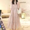 2025 Summer New Design Sense Splicing Thin Cake Skirt Retro Lady Five-quarter Sleeve Solid Color Temperament Dress