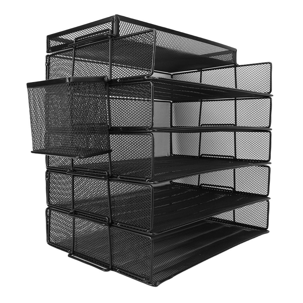 5 Tray Paper Organizer 5 Tier Letter Storage Mesh Desk File Sorter with Top Box Pen Container for