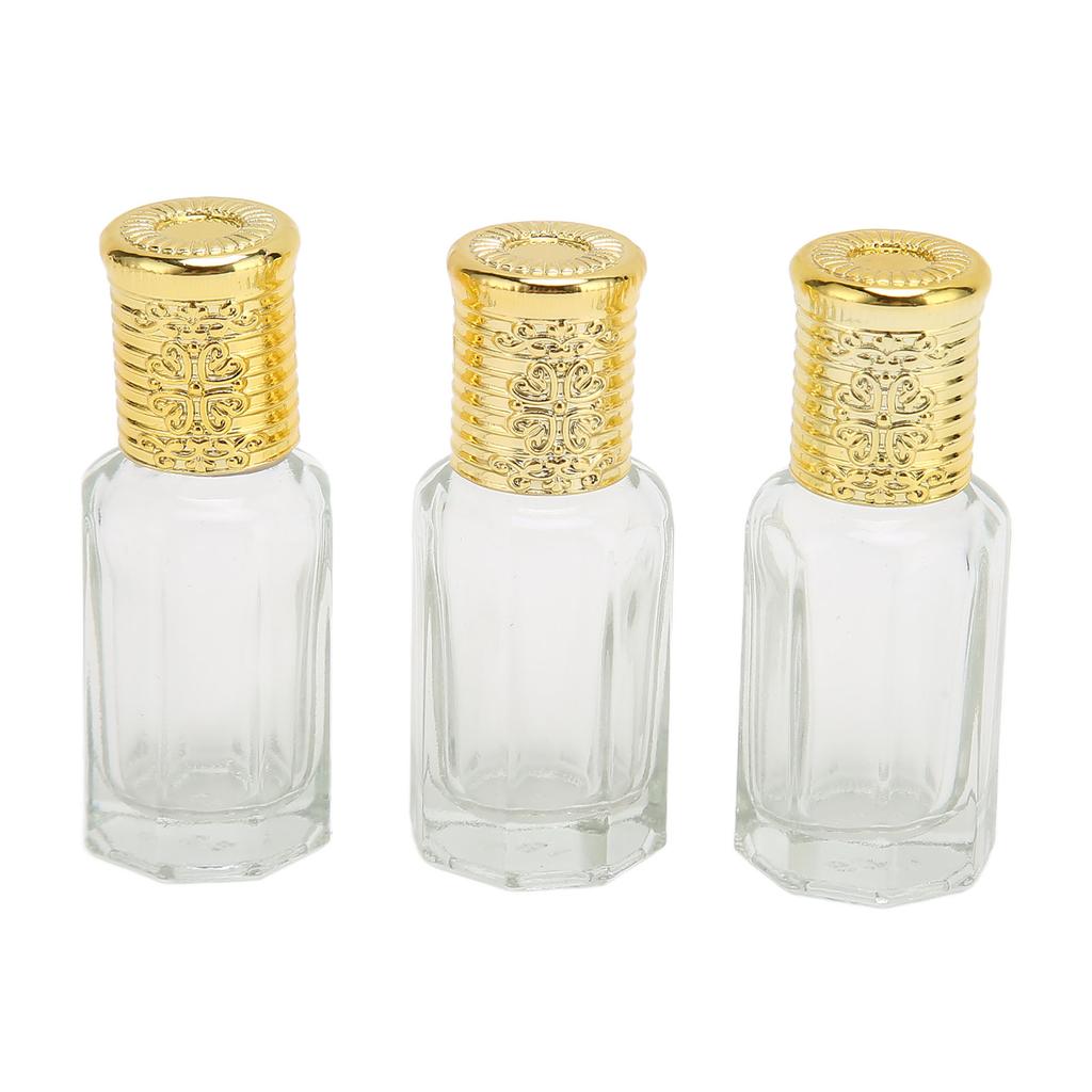 3pcs Refillable Perfume Bottle 10ml Golden Cover Transparent Glass Refillable Perfume Container for