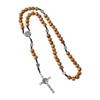 Braided Wood Beads Chain Rosary Necklace with Pardon Crucifix Crosses Medals Pendant Christians Religious Communion Gift