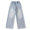 Girls' Straight Leg Pants Spring and Autumn Styles Jean Light Colored Embroidered Elastic Wide Leg Pants Children's Jeans