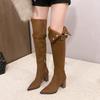 Pointed High-heeled Velvet Boots for Women's Winter New Two-wear Thick-heeled Knee Boots Show Thin Temperament Thin Boots