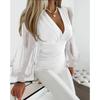 YYFS Women's Fashion Casual Spring Autumn Solid Color Print Long Sleeve V-Neck Blouses & Shirts