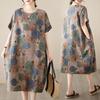 2023 Summer Plus Size Cotton Linen Print Dress - Retro Ethnic Style for Women