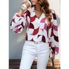 YYFS Women's Fashion Casual Spring Autumn Colour Block Print Long Sleeve V-Neck Blouses & Shirts