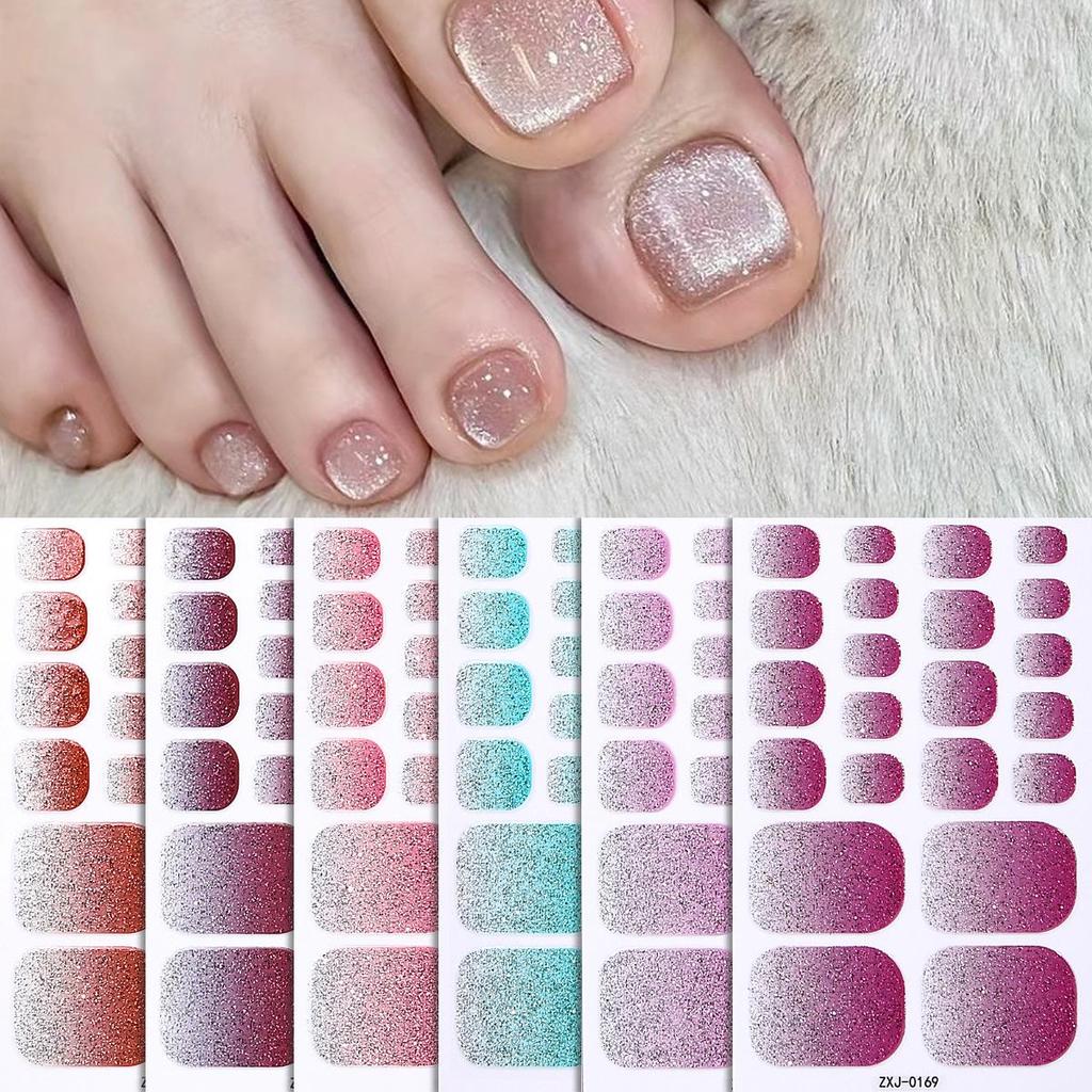 Y2K Glitter Toe Nail Stickers - Waterproof Solid Color for Summer Nail Art