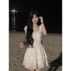 French Style Petite Waist Square Neck Cap Sleeve Dress for Women - Slimming Summer Short Dress