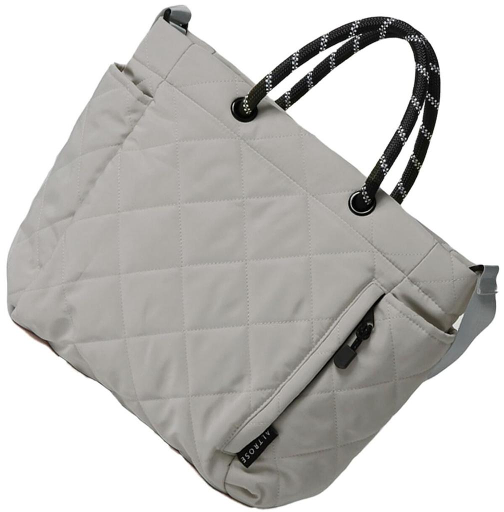 Grey Tote Bag for Large Shoulder [Altro Rose] Women, Capacity, 2-Way, Bag, Handbag, Over-the-Shoulder, Zippered, Lightweight, Quilted, Mother's Bag,