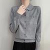 Lapel Knitted Cardigan Solid Color Loose with Pockets, Versatile Spring New Top Coat