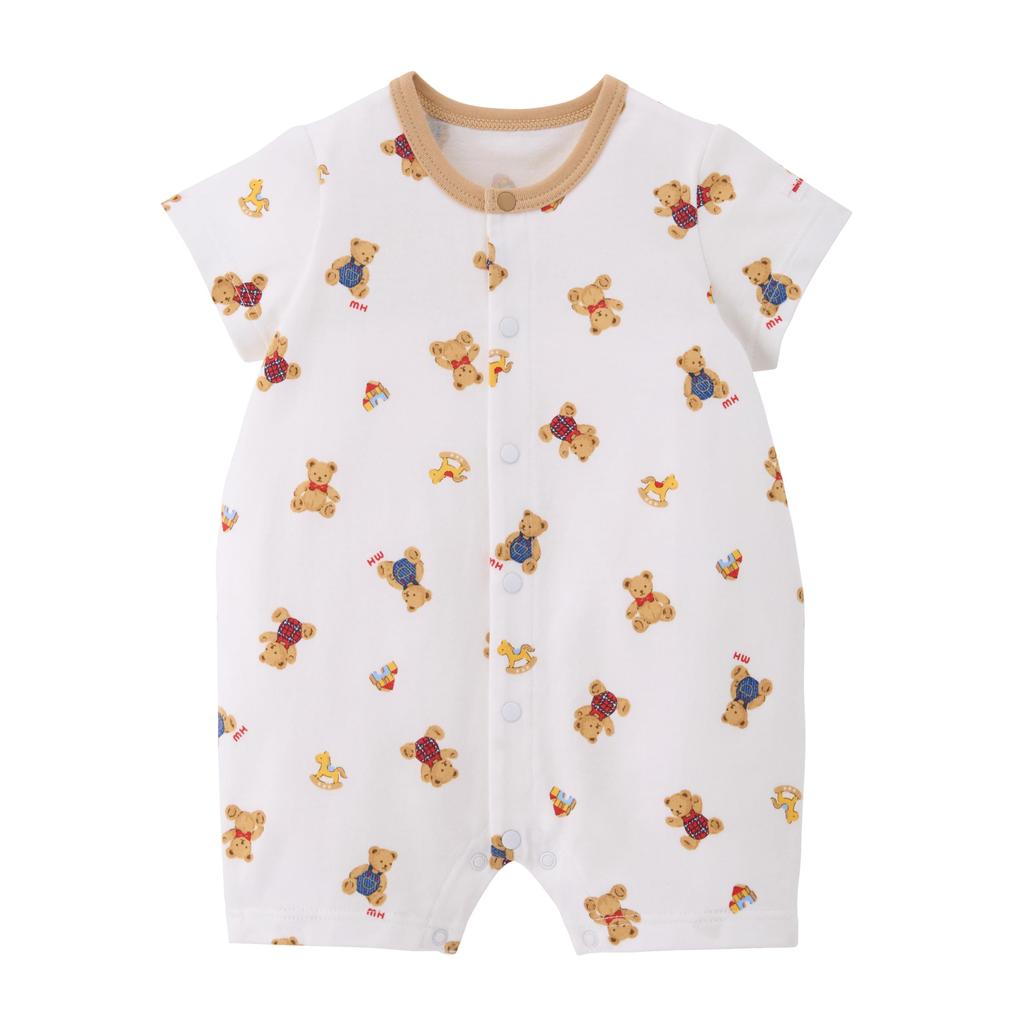 Shortall Short Made In Baby White [Miki House] Romper, Sleeve, All-Over Pattern, Bear, Japan, Boys, Girls, Baby, Kids, Clothes, Infant, Children's