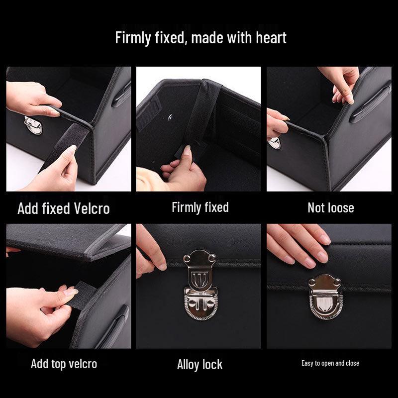 Car Leather Interior Organizer: Large Capacity Folding Trunk Storage Box